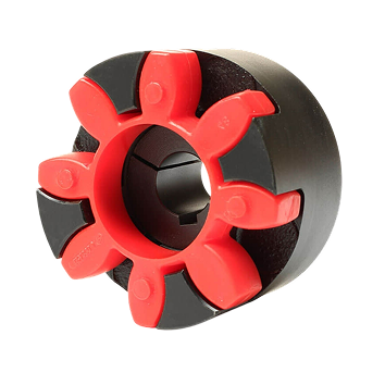 Это самый распространённый тип в промышленности, и не случайно. Конструкция проста: две полумуфты с кулачками и упругий элемент между ними - звезда или паук из эластомера. Упругий элемент - это расходный материал, меняется без демонтажа полумуфт.